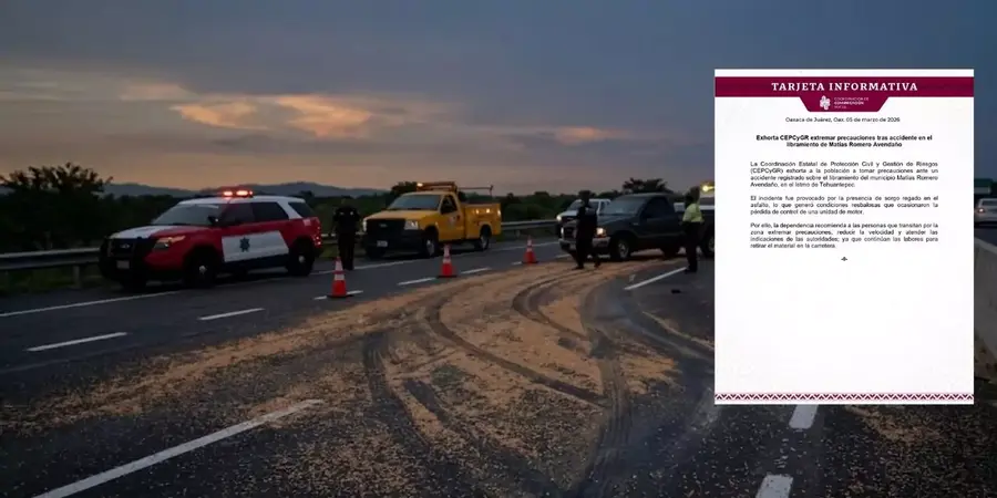 Mientras tanto, autoridades viales y Protección Civil pidieron a la población extremar precauciones en el libramiento de Matías Romero: bajar la velocidad, respetar señalamientos y atender indicaciones del personal en el sitio. El llamado de fondo es sencillo y práctico: asegurar bien la carga y actuar rápido cuando algo cae sobre la vía para que un imprevisto no se convierta en tragedia.