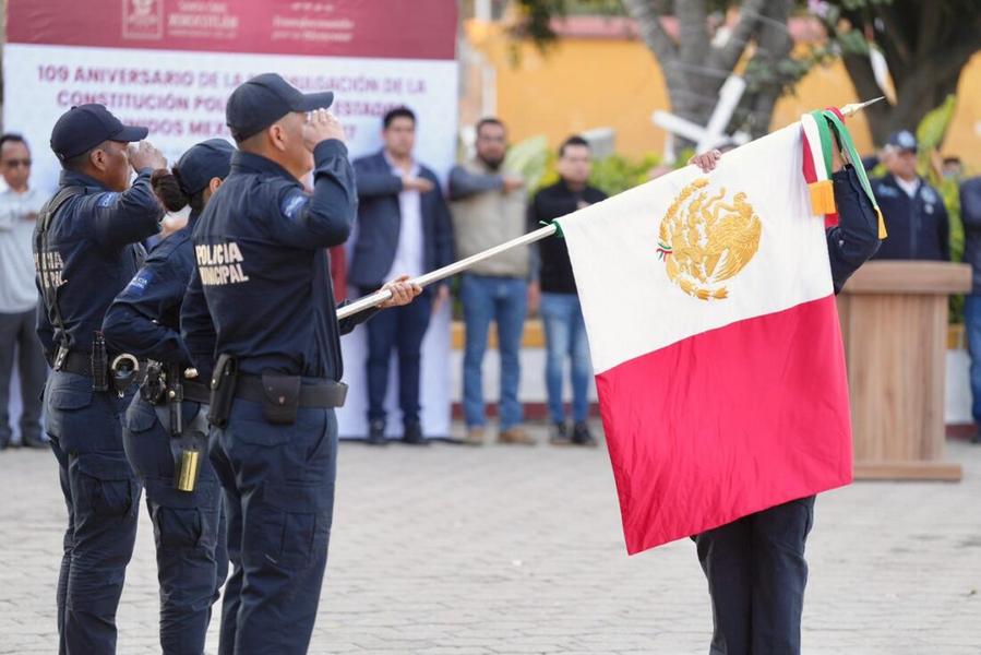 Santa Cruz Xoxocotlán, Oax., 5 de feb. — El Ayuntamiento de Santa Cruz Xoxocotlán conmemoró el 109 aniversario de la promulgación de la Constitución Política de los Estados Unidos Mexicanos de 1917, un documento que cimentó derechos sociales como la educación, la tierra y el trabajo. Según el propio Ayuntamiento, la presidenta municipal Nancy Benítez encabezó el acto cívico y reiteró su compromiso con el respeto a la ley y las instituciones.