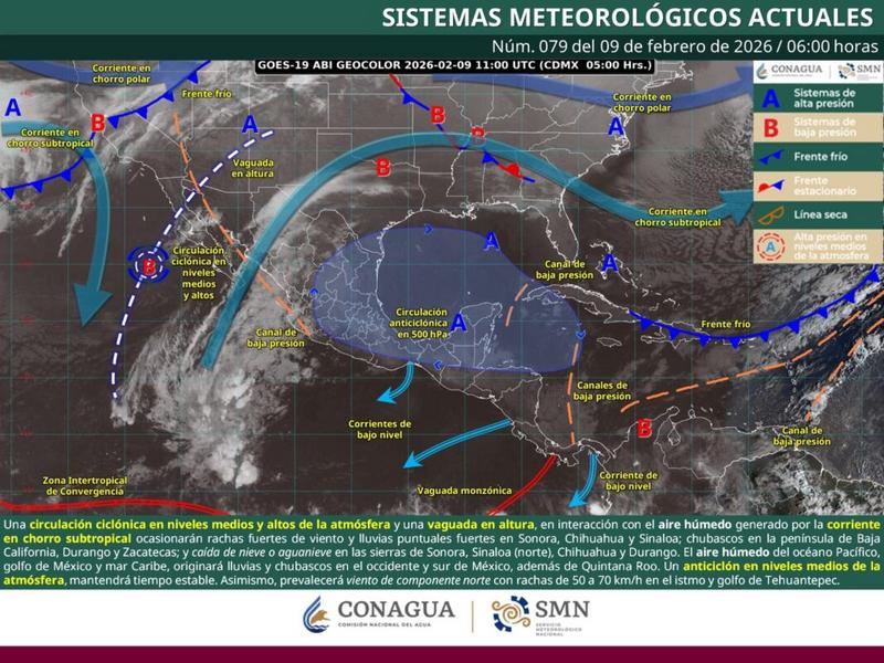Oaxaca de Juárez, Oax. | 9 de febrero de 2026. La Coordinación Estatal de Protección Civil y Gestión de Riesgos (CEPCyGR) informó que este lunes la entidad mantendrá tiempo estable, con cielo mayormente despejado, intensa radiación solar y baja probabilidad de lluvias.